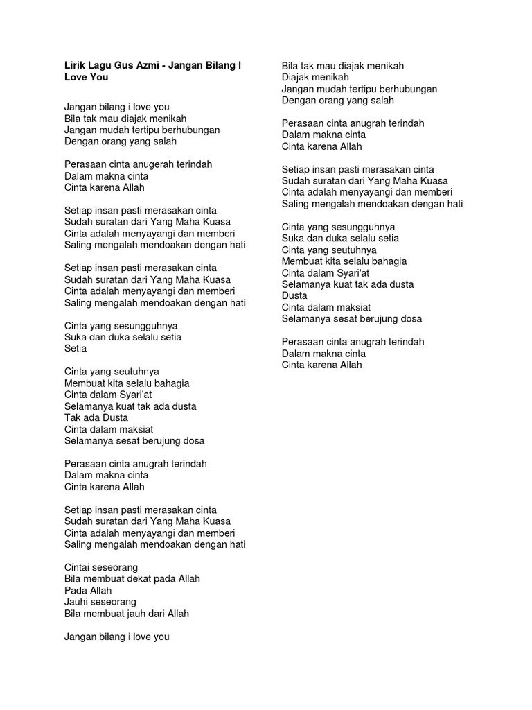 Full Lirik Jangan Bilang I Love You Gus Azmi Syubbanul Muslimin Youtube