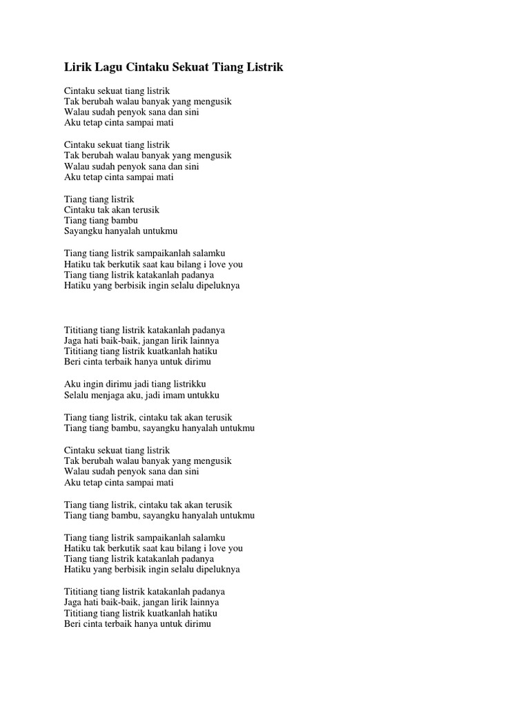 Lirik Lagu Cintaku Sekuat Tiang Listrik Pdf